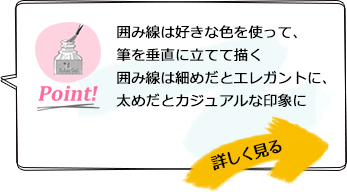 囲み線は好きな色を使って、筆を垂直に立てて描く囲み線は細めだとエレガントに、太めだとカジュアルな印象に