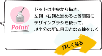 ドットは中央から描き、左側→右側と進めると等間隔にデザインブラシを使って、爪半分の所に目印となる線をしく