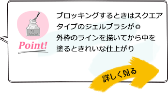 ブロッキングするときはスクエアタイプのジェルブラシが◎外枠のラインを描いてから中を塗るときれいな仕上がり