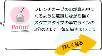 フレンチカーブの山が真ん中にくるように意識しながら描くスクエアタイプの筆でラインの3分の2まで一気に描きましょう